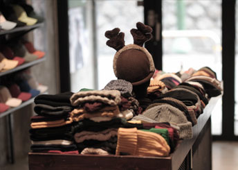 여름에도 겨울모자, 겨울에도 여름모자를 함께 진열합니다.