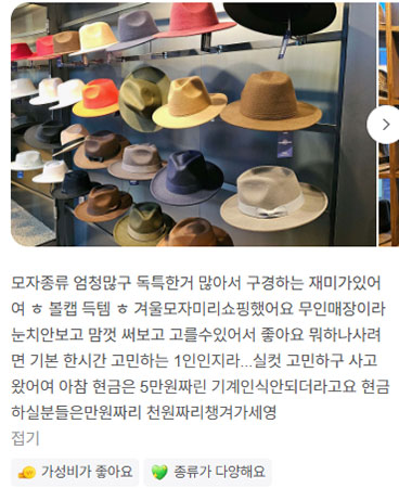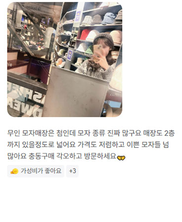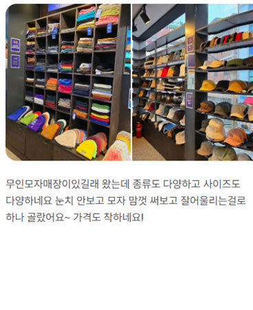 현재, 무인 시스템으로 모자를 판매하는 곳은 단 한곳도 없습니다.